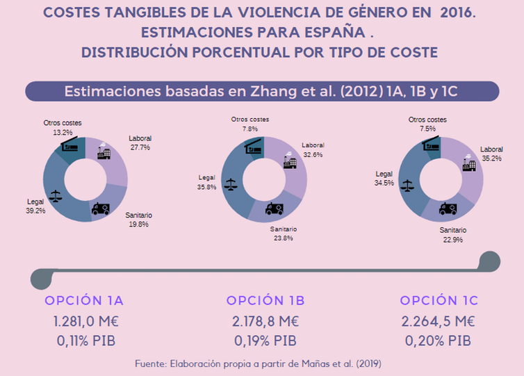 Pagamos un alto precio por la violencia de género. Así se deriva de la estimación del coste económico para 2016, que arroja un resultado, en su versión más conservadora, de 1 281 millones de euros al año, lo que supone el 0,11 % del PIB anual o, lo que es lo mismo, 27,6 euros por habitante y año.