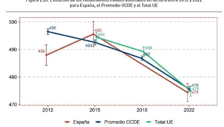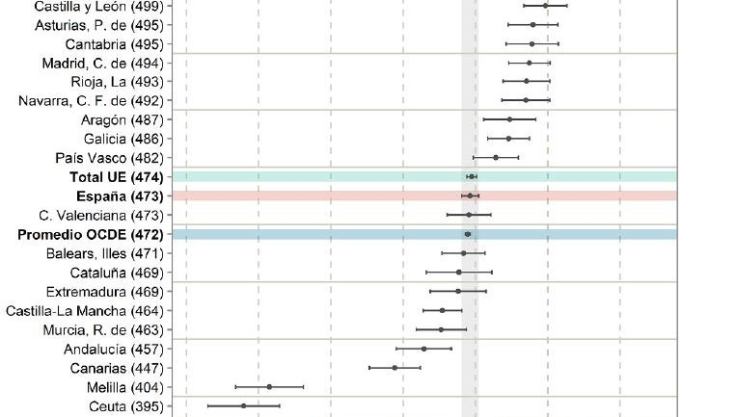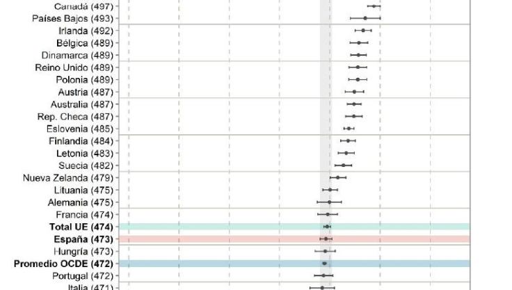 El estudio constata que este bajón es generalizado, aunque la buena noticia es que en España ha sido menor que en otros países de la OCDE. El rendimiento medio del alumnado español en matemáticas se sitúa en los 473 puntos, una cifra similar a la media OCDE (472) y al total de la Unión Europea (474), lo que nos sitúa en niveles de países como Hungría, Francia, Alemania, Portugal o Italia. También pone de relieve que tenemos una cifra de alumnos excelentes muy baja: solo representan el 6%.