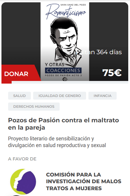 Acabo de donar 15 € de las regalías de la venta de 12 ejemplares de mi segunda novela, Romanticismo y otras coacciones, para la Comisión para la Investigación de Malos Tratos a Mujeres a través de Mi Grano de Arena.