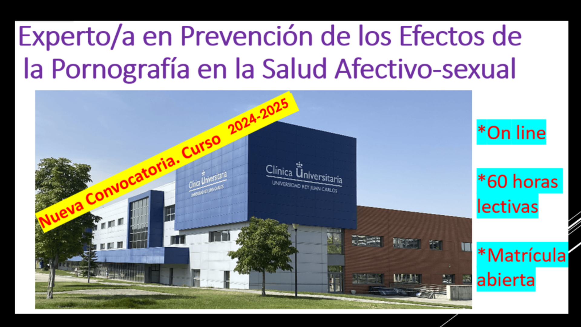 El hecho de que una universidad pública española, la Universidad Rey Juan Carlos de Madrid, incorpore a su oferta formativa dirigida a profesionales de las ciencias de la salud, humanas y sociales, los contenidos científicos y profesionales que hacen referencia a la salud sexual y la exposición a la pornografía, particularmente aquella que presenta diferentes dosis de violencia, es un avance significativo en la prevención de diferentes riesgos de salud sexual y afectiva.