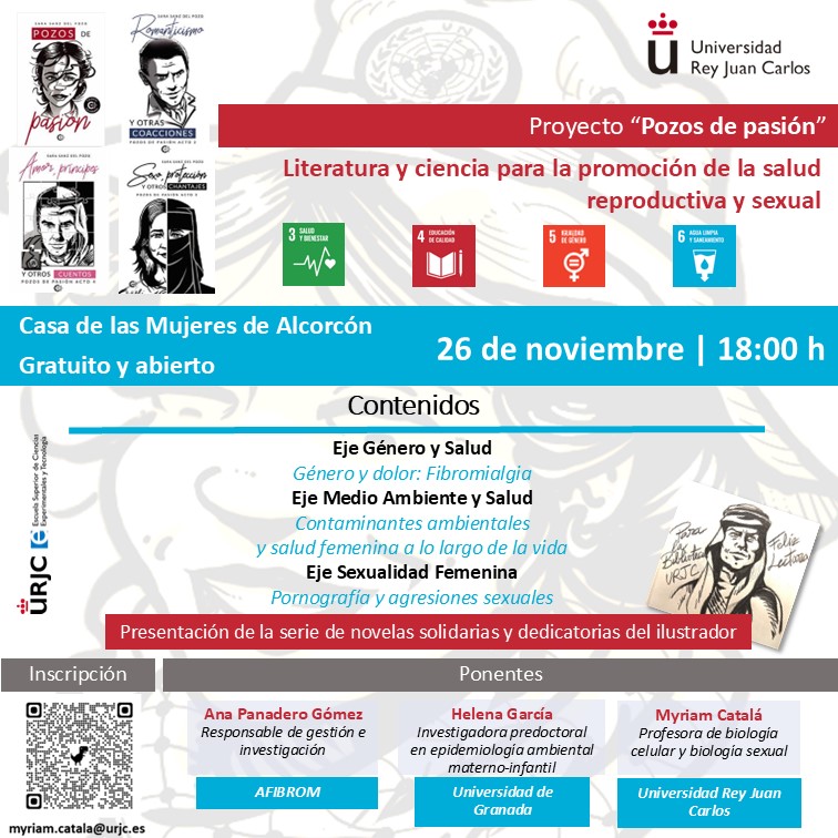También presentaremos el proyecto Pozos de pasión, con la satisfacción de haber recibido recientemente el reconocimiento público del Ayuntamiento de Alcorcón por la lucha contra la violencia machista junto con importantes asociaciones de mujeres de Alcorcón, la Unidad de Atención a la Familia y Mujer (UFAM) de la Policía Nacional y el Delegado del Gobierno en Madrid.